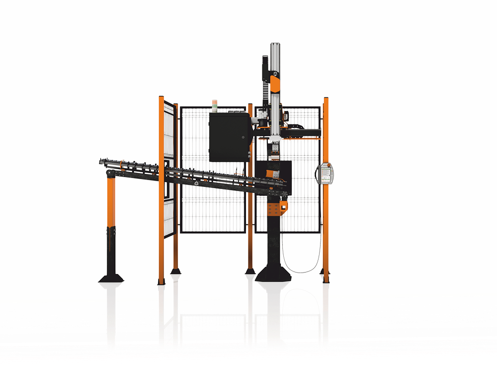 Линейный робот для мини ТПА от 20т до 80т. В комплекте с роботом идёт колонна для установки рядом с литьевой машиной.