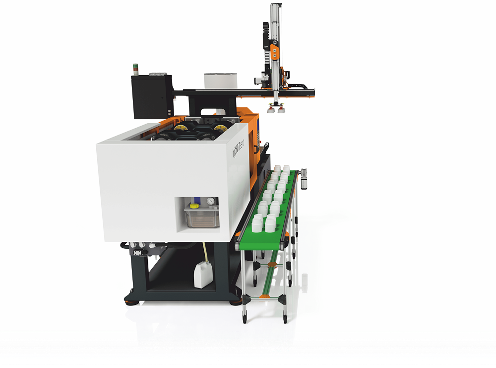 - Технология In Mold Label с секцией подачи этикетки и генератором статики;