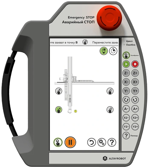 Данный интерактивный интерфейс предназначен для начинающих пользователей и имеет функции коллаборативного робота с простым алгоритмом ручного обучения по контрольным точкам. Достаточно вручную показать траекторию и последовательность операций, контроллер сам создаст программу и подберет оптимальную скорость.